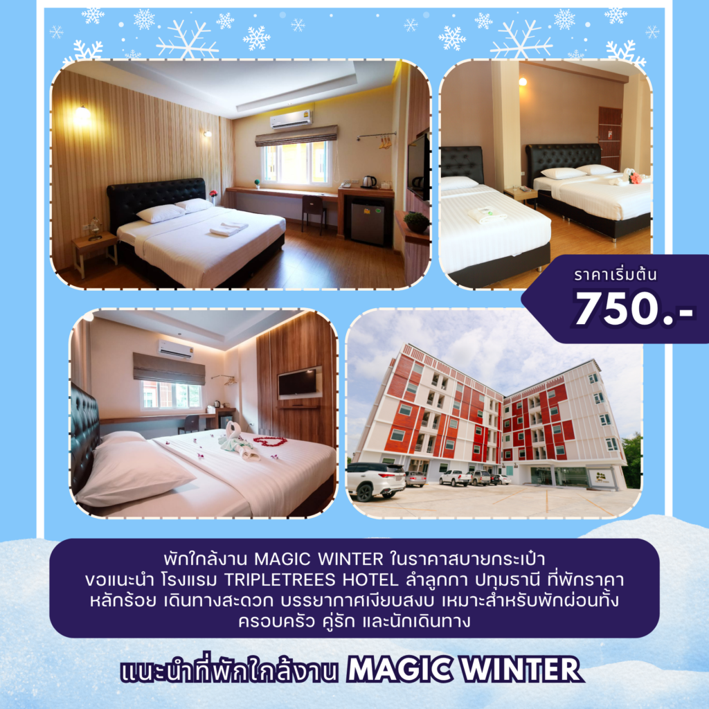 และใครที่มาร่วมแล้วกำลังมองหาที่พักหลังเที่ยวสนุกในงาน MAGIC WINTER 2025 แล้วมาพักผ่อนสบายที่ Tripletrees รังสิต ที่พักใกล้งาน MAGIC WINTER, ห้องใกล้งาน MAGIC WINTER, โรงแรมใกล้งาน MAGIC WINTER เดินทางง่าย ราคาคุ้มค่า แวะพักผ่อนเติมพลังที่ Tripletrees รังสิต ที่พักชั่วคราวใกล้งาน MAGIC WINTER ที่พร้อมดูแลคุณด้วยรอยยิ้ม ❤️