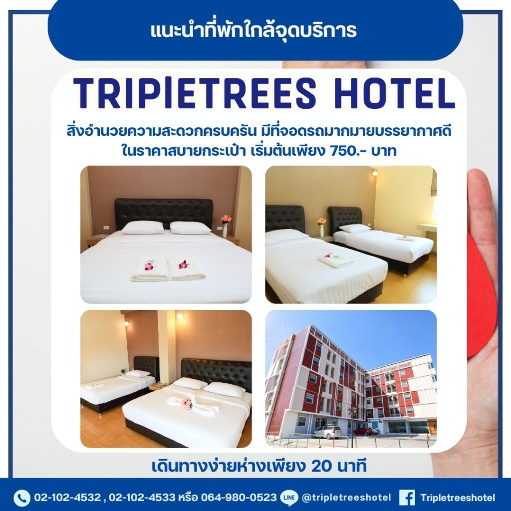 และใครหาที่พักขอแนะนำที่พักใกล้ศูนย์การค้า Zpell โรงแรม Tripletrees เป็นที่พักใกล้ศูนย์การค้าฟิวเจอร์พาร์ค รังสิต โรงแรมใกล้ศูนย์การค้า Zpell รังสิตเดินทางสะดวกมาก ที่นี่มีห้องให้เลือกหลายสไตล์ ห้องพักใกล้ศูนย์การค้า Zpell มีสิ่งอำนวยความสะดวกครบครัน อยู่ติดถนนใหญ่ รังสิต ลำลูกกา ที่พักใกล้ศูนย์การค้า Zpellรังสิต ที่มีที่จอดรถ เปิดตลอด 24 ชั่วโมง ราคาเริ่มต้นเพียงคืนละ 750 บาท