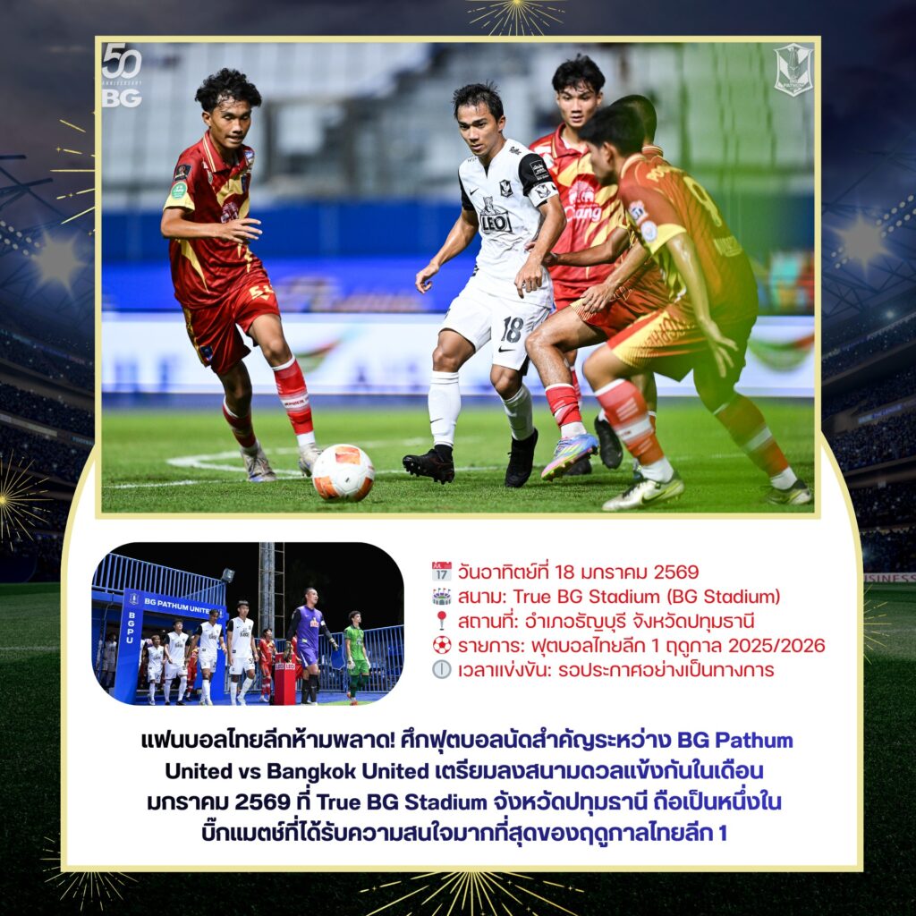 ไทยลีกฤดูกาล 2569 กำลังเข้มข้นขึ้นเรื่อย ๆ และแฟนบอลเตรียมตัวให้พร้อมสำหรับ เดอะแมตช์ที่ทุกคนรอคอย ระหว่าง BG Pathum United กับ Bangkok United เกมนี้ถือเป็นการพบกันของสองทีมยักษ์ใหญ่ที่มีสไตล์การเล่นเร็วและดุดัน ไม่ว่าคุณจะเป็นแฟนทีมไหน บรรยากาศในสนามจะเต็มไปด้วยความตื่นเต้นและลุ้นระทึกทุกวินาที