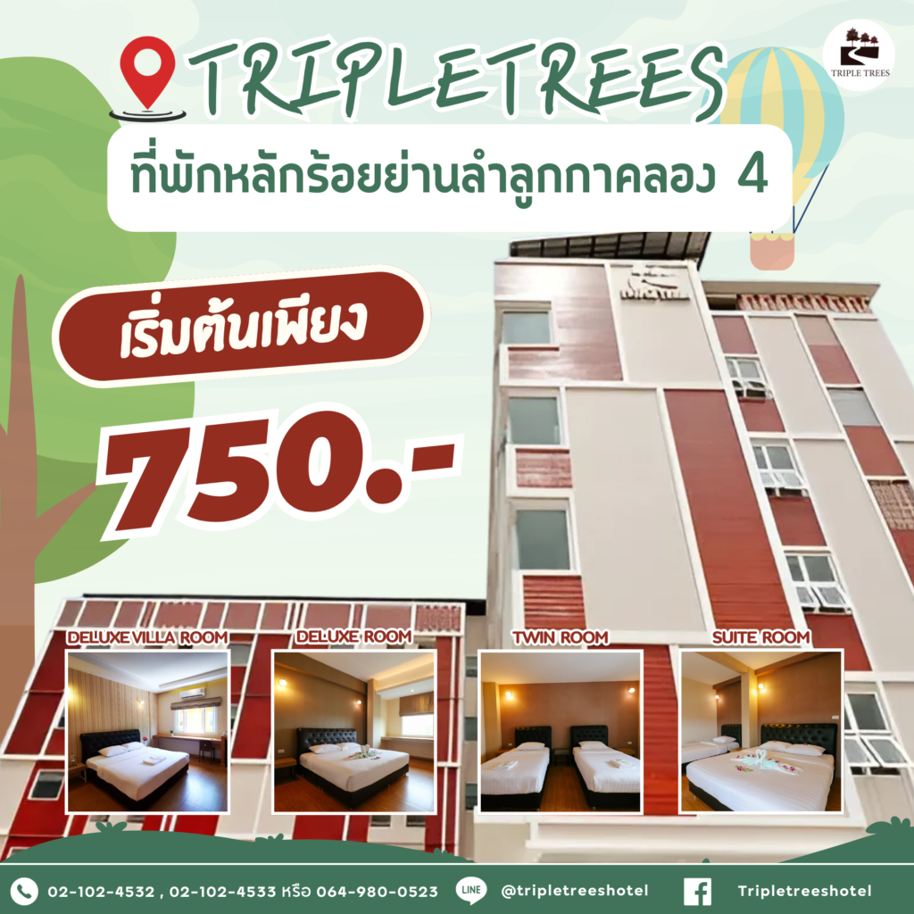 ขอแนะนำTriple Trees Hotel บริการห้องพักลำลูกกาคลอง4