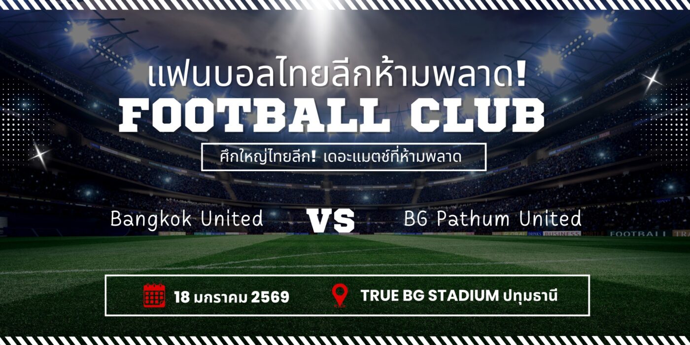 ไทยลีกฤดูกาล 2569 กำลังเข้มข้นขึ้นเรื่อย ๆ และแฟนบอลเตรียมตัวให้พร้อมสำหรับ เดอะแมตช์ที่ทุกคนรอคอย ระหว่าง BG Pathum United กับ Bangkok United