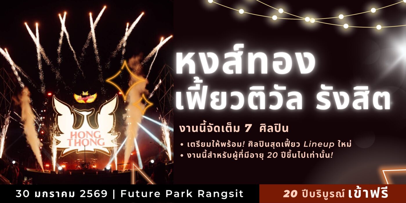 เตรียมระเบิดความมันส์กันให้สุด! รังสิตกำลังจะร้อนแรงกว่าที่เคย กับงานดนตรีสุดยิ่งใหญ่ “หงส์ทอง เฟี้ยวติวัล” ที่ยกทัพความสนุกมาแบบจัดเต็ม รวม 7 ศิลปินตัวท็อป ขึ้นเวทีเดียวกัน พร้อมโชว์สุดเดือด เสียงดนตรีสุดเร้าใจ และบรรยากาศความมันส์แบบไม่มีพัก