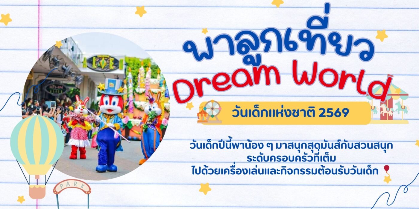 วันเด็กแห่งชาติปี 2569 นี้ เตรียมตัวให้พร้อมสำหรับ ความสนุกแบบสุดเหวี่ยงของครอบครัว! วันเสาร์ที่ 10 มกราคม 2569 Dream World ขอเชิญชวนน้อง ๆ และผู้ปกครองมาร่วมสนุกในสวนสนุกระดับครอบครัว ที่เต็มไปด้วยเครื่องเล่นหลากหลาย กิจกรรมสร้างสรรค์ และมุมถ่ายภาพน่ารัก ๆ ที่จะทำให้วันเด็กปีนี้กลายเป็น ความทรงจำสุดพิเศษที่ไม่มีวันลืม