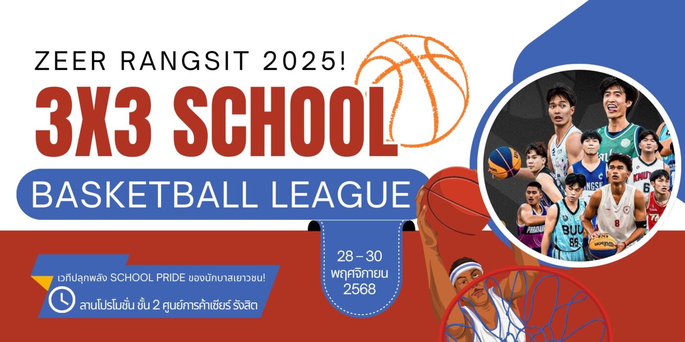 เตรียมพบกับศึกแห่งความมันส์ครั้งใหญ่ส่งท้ายปี! 3X3 SCHOOL BASKETBALL LEAGUE – ZEER RANGSIT 2025 คือการแข่งขัน บาสเกตบอล 3x3 ระดับเยาวชนที่น่าจับตามองที่สุดแห่งปี ที่จะระเบิดความเดือดตลอด 3 วันเต็ม! ขอเชิญชวนทุกท่านมาร่วมเชียร์และเป็นกำลังใจให้แก่นักกีฬา บาสเกตบอลเยาวชน ในรุ่น 13, 15, และ 18 ปี ทั้งชายและหญิง ที่จะมาประชันความสามารถและทักษะ ณ ลานโปรโมชั่น ชั้น 2 ศูนย์การค้าเซียร์ รังสิต ระหว่างวันที่ 28 – 30 พฤศจิกายน 2568 ติดตามรายละเอียดกำหนดการและทุกความเคลื่อนไหวของการแข่งขันได้ที่นี่!