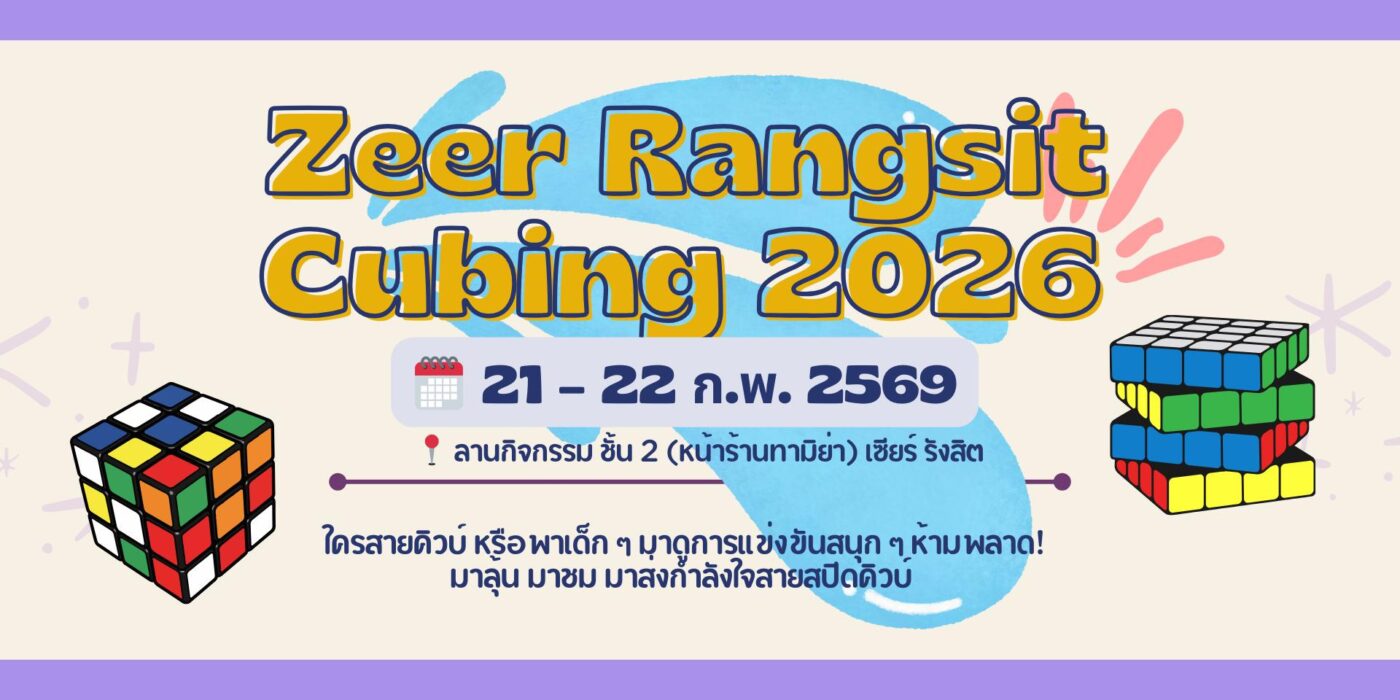 เตรียมพบกับการแข่งขันสุดมันส์ของสายสปีดคิวบ์ ในงาน Zeer Rangsit Cubing 2026 ที่จะรวมเหล่านักหมุนลูกบาศก์จากทั่วประเทศมาวัดความเร็ว